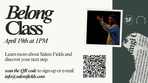 Our next Belong Class will take place on Sunday, April 19th, 2026 at 1PM. Find out more about Salem Fields, meet some staff and find out how to take some Next Steps here at church. Sign-Up Here!